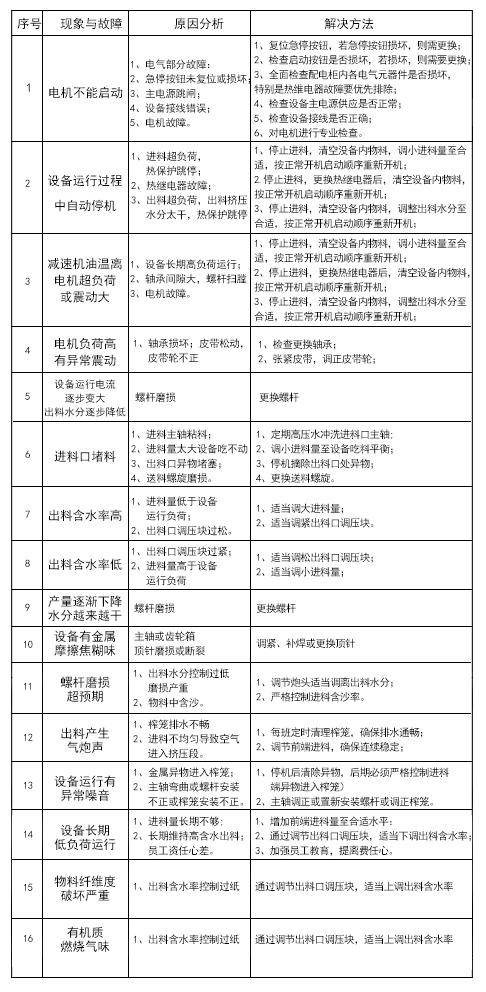 5.1.4設(shè)備運行過程中,若出口調(diào)節(jié)塊調(diào)節(jié)空間已經(jīng)有限,運行電流逐步升高,出料水分逐漸降低,則操作人員應(yīng)提前做好停機(jī)更換螺桿的準(zhǔn)備。
